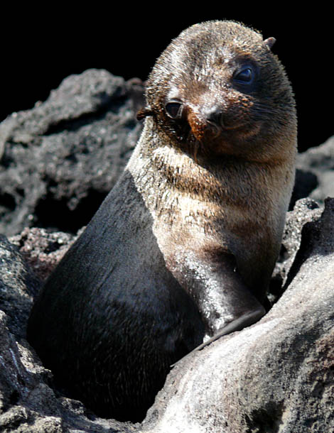 A fur seal pup wakes up from his nap |